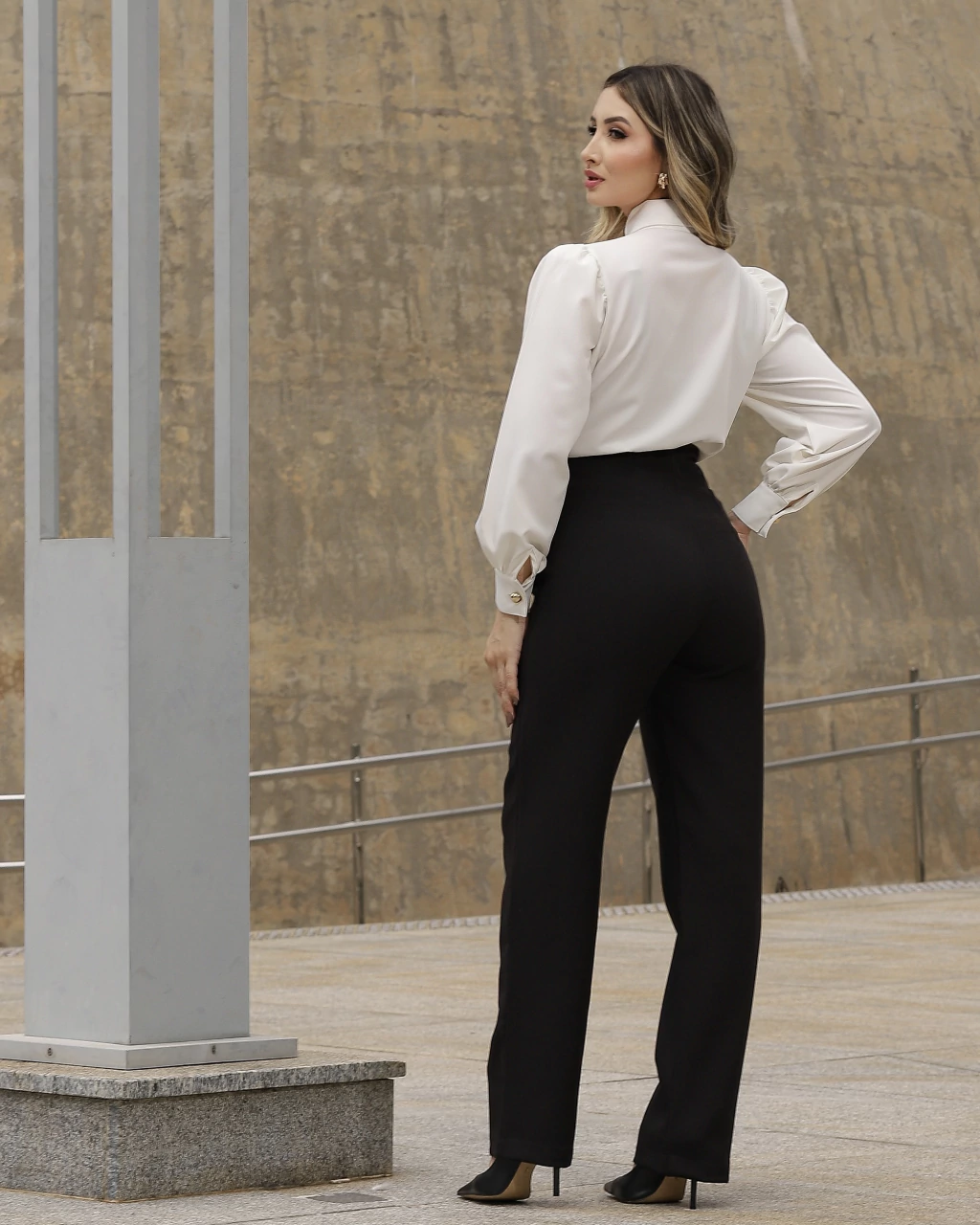 Fecho: possui zíper, botão de massa interno e fecho de metal