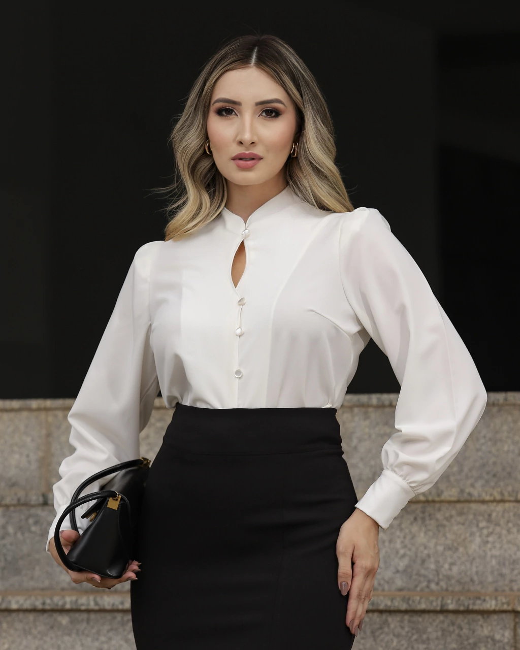 Modelagem: manga solta (bufante), comprimento rente ao quadril (não é curta), tecido extremamente gostoso ao toque e caimento impecável. Possui botões perolados e acabamento em cetim. Prazer, sua camisa perfeita!
